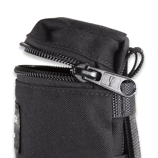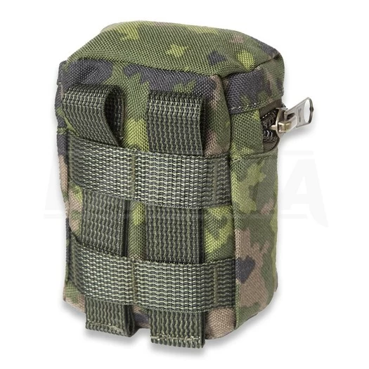 Excellent for small items. This general-purpose pouch, slightly larger than a man’s fist, can nicely be attached to a backpack, belt or shoulder strap. Equipped with a zipper, the pouch helps you keep small, important items and valuables separated from other supplies. It is handy for storing things like fire-lighting equipment, a mobile phone, a digital pocket camera, fishing lures or hunting cartridges. Although it looks small, the pouch can easily accommodate a tasty 0.33-litre soft drink and, say, some candy bars. A flap equipped with an 8-mm zipper closes the pouch in a splash-proof manner. There is a metal drain ring at the bottom of the pouch.